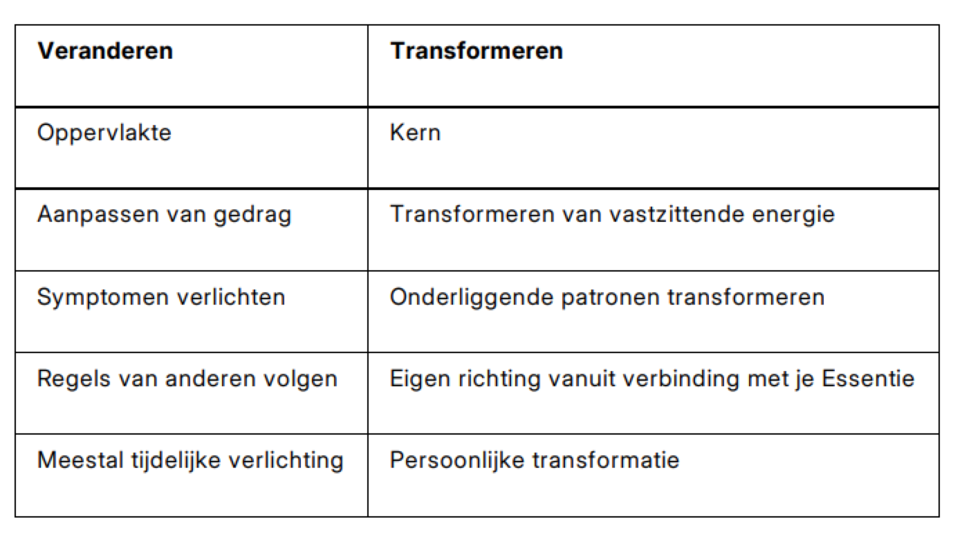 - Krijg je helderheid over hoe transformatie jou persoonlijk kan ondersteunen;